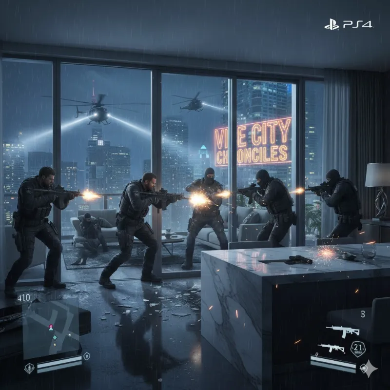 نسخه PS4 بازی از نظر گرافیکی در سطح بسیار بالایی قرار دارد. افکت های نور، سایه و انفجارها با دقت چشم گیری طراحی شده اند. بافت محیط ها، از کوچه های تاریک گرفته تا ساختمان های مدرن، حس واقع گرایی عجیبی القا میکنند. صدای محیط نیز یکی از نقاط قوت اصلی است؛ از آژیر خودروهای پلیس گرفته تا فریادهای درگیری، همه چیز در هماهنگی کامل است.