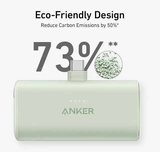 بدنه پاوربانک Anker Nano A1653 از مواد بازیافتی PCR ساخته شده است. حتی بسته‌ بندی‌ اش هم به‌ گونه‌ای طراحی شده که کمترین اثر منفی بر محیط‌ زیست بگذارد. این یعنی خرید شما، علاوه بر سود شخصی، قدم کوچکی هم برای حفظ زمین خواهد بود.