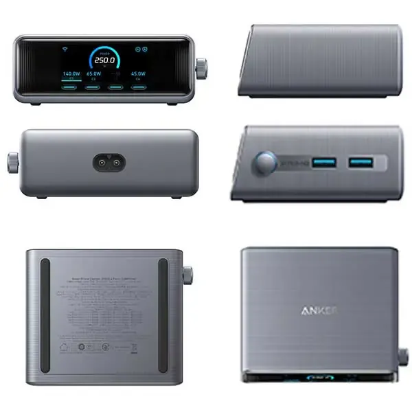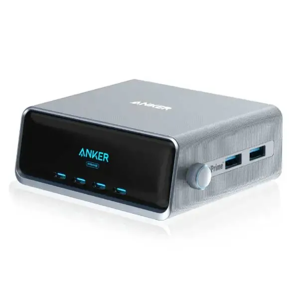 شارژر رومیزی انکر مدل A2345 توان 250 وات با 6 پورت از فناوری GaN (Gallium Nitride) بهره می برد که نسل جدیدی از نیمه هادی هاست. GaN باعث می شود توان بالاتر در ابعاد کوچک تر و با تولید حرارت کمتر ارائه شود. همین ویژگی است که اجازه می دهد دستگاهی با توان 250 وات همچنان مناسب و کارآمد باقی بماند.